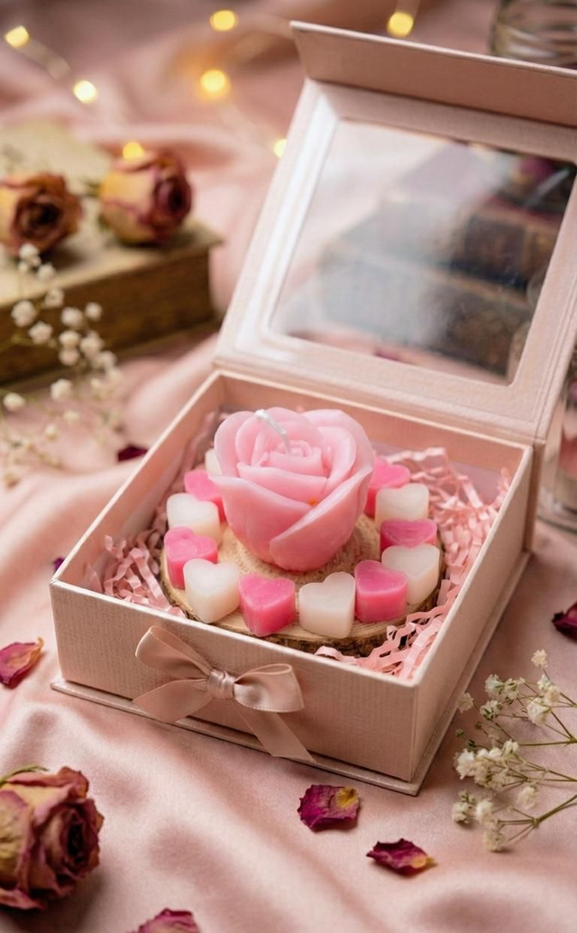 Повече от просто свещ – това е преживяване. Представете си уханието на българска роза , което се разнася, докато тази красива композиция краси масата ви.