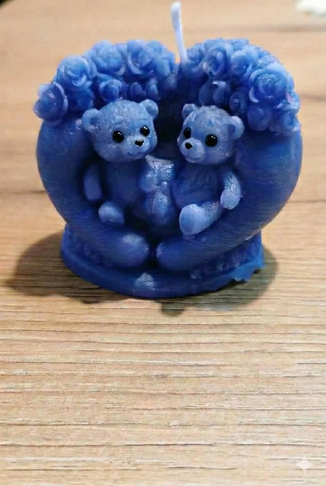 Тази уникална ръчно изработена свещ "Вечна прегръдка" е перфектният символ на близост и обич. Изобразява две влюбени мечета, гушнати в сърце от детайлни рози – красив спомен, който ще украси всеки дом.